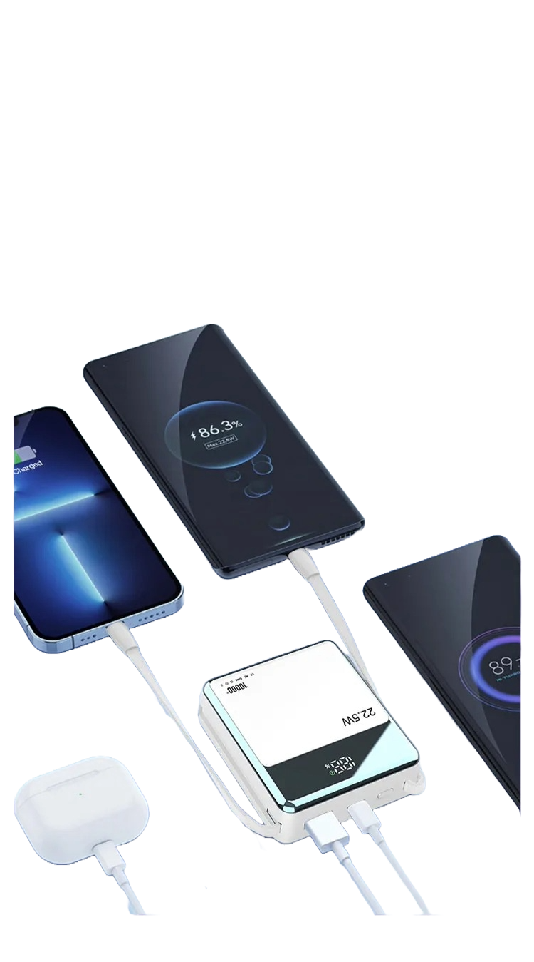 The Chillitech® 22.5W Power Bank is a sleek and efficient portable charging solution, perfect for your on-the-go lifestyle. With a robust 10000mAh capacity, this USB C portable battery charger ensures reliable power for your devices. What sets it apart is its built-in cables catering to both lightning and USB-C, providing versatile compatibility for a variety of devices. The fast-charging feature guarantees a quick and efficient power boost, addressing your charging needs in no time. Its compact design makes it incredibly convenient, easily slipping into pockets or bags.