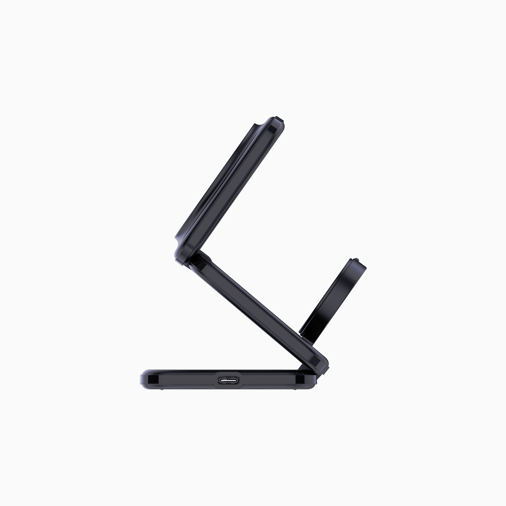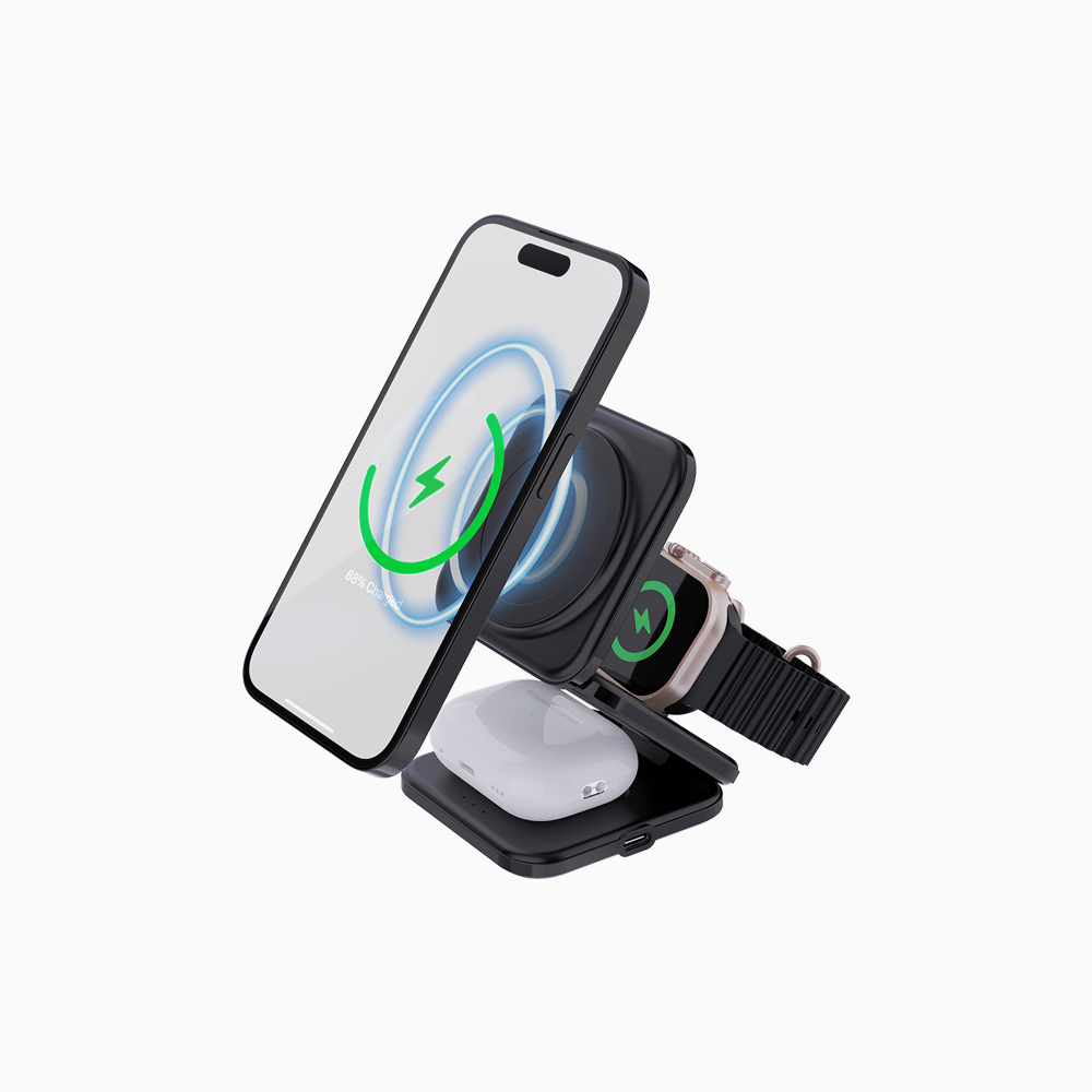 Ideal for both travel and everyday use, its foldable design ensures easy portability and storage. Enjoy the convenience of a secure magnetic connection and adjustable viewing angles, ensuring your devices are always charged and ready.