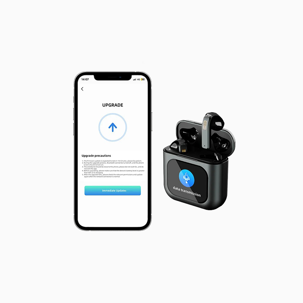 Discover our innovative earbuds with a built-in screen on the case, seamlessly connecting to both iOS and Android devices. Download the dedicated app for software updates, ensuring your earbuds and case stay up-to-date with the latest features and improvements.